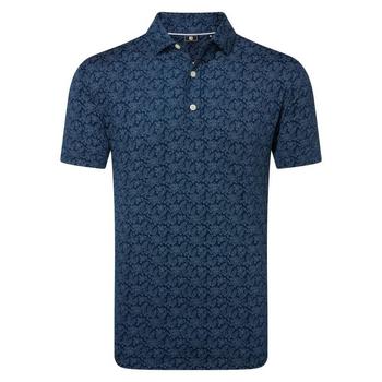 Footjoy Wingtip Floral Print Lisle Polo Shirt- Navy/White