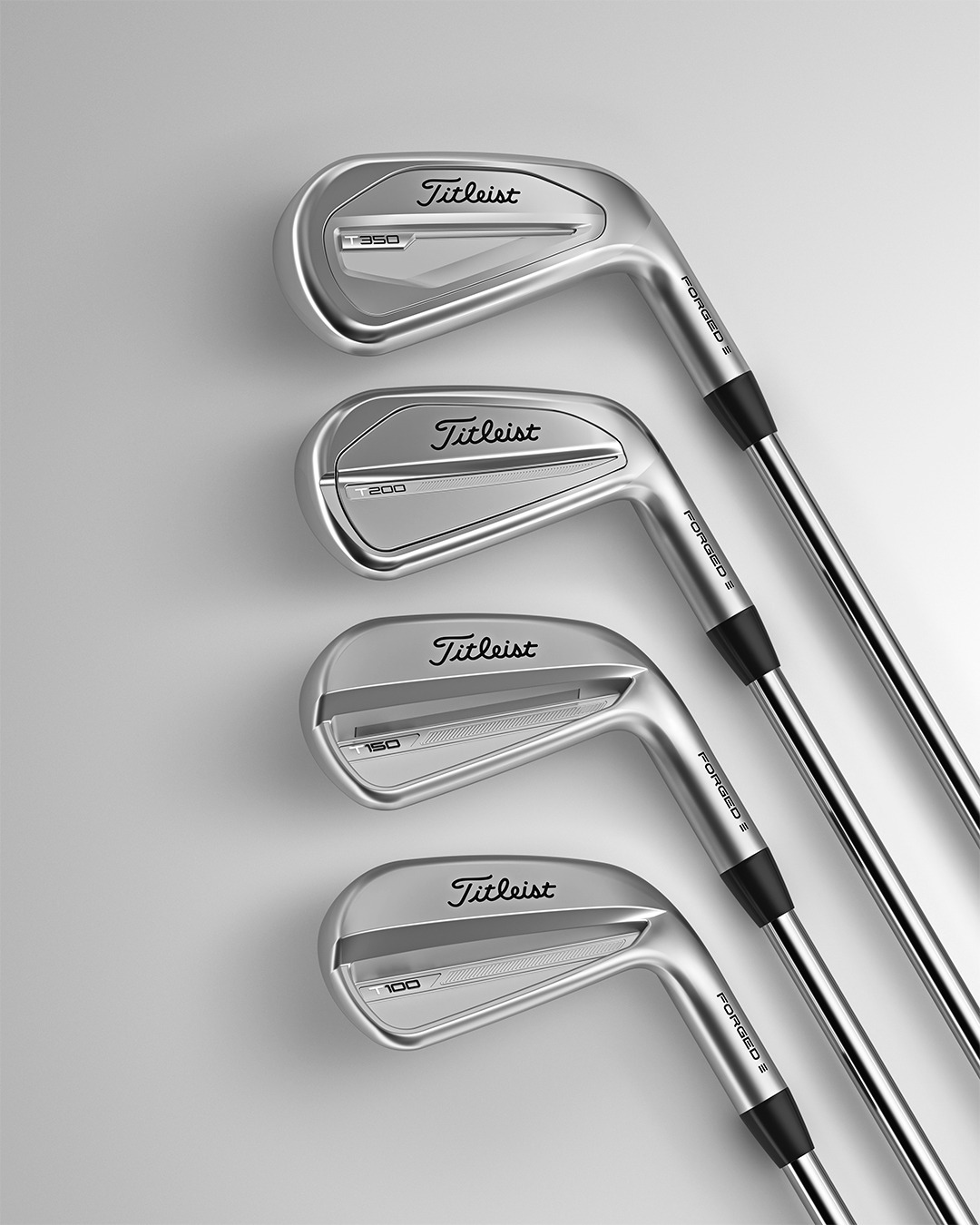 Design: The T100 is the most compact iron among the models, while each subsequent model is larger in size. The T200 falls in the middle size-wise between the T100 and the larger T350, which has a wider sole and thicker topline. All four models are labeled as forged.